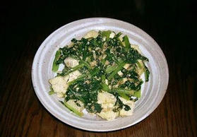 塩加減がミソで、酒のお供になる。チキナーはカラシナ(方言でシマナー)を塩漬けにしたもののことを言います。 チキナーを水で洗い塩抜きをして(ここ重要、塩辛くなければそのまま使います)適当な大きさに切ります。島豆腐、豚三枚肉(バラ肉)をかつお節と一緒に炒め、醤油で香り付けをする。隠し味に鶏がらスープの素や、ほんだしを少し加えると、より旨味が引き立ちます。豚肉の変わりにツナ缶を使うのも良し、車麩も加えるとなお美味しい。