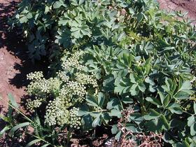 長命草(チョミーグサ、チョーミーグァー)。沖縄では長寿につながるとして珍重されてます。別名サクナなどとも呼ばれている、野草で、和名はボタンボウフウ、セリ科の常緑多年草で、写真に見られる小さな白い花を多くつける。利用部分は根と若葉、サクナの根を細く削り、乾燥させて、疲労回復、滋養強壮などの薬用とします。料理としてはサクナを細かく千切りにして豆腐と白味噌を使った味噌和え、軽く茹でたサクナを刻んで豚肉と赤味噌(中華味噌でも可)を使って味噌炒めにします。