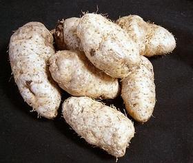 クーガイモ(トゲドコロ、ハリイモ)は、ヤムイモと同じく熱帯アジア原産のため日本では沖縄や奄美に限って昔から栽培されているようです。すりおろすと粘りが強く、ヤマイモと同じように扱えます。