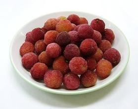 ヤマモモは地域によりミジムムとも呼ばれており、果実は赤く熟すると濃い赤紫色になる、柔らかくて水分も多く甘酸っぱい、スイカと同じ要領で少し塩を振って食べると美味しい。