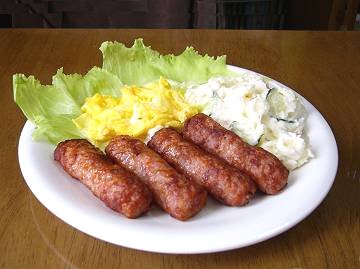 アメリカ南部の家庭料理、別名ブレックファスト・ソーセージとも呼ばれる。 ソーセージを作るときに使うケーシングと呼ばれる羊や豚の腸など皮を使用しないで、成型のみで形を整えた「皮なしソーセージ」です。市販もされていますが、手軽に作れるのでたまに作ります。 豚ひきと塩コショウとセージパウダーをベースに、好みのハーブやチーズ加えたりしてアレンジも簡単出来るのも魅力。 形もウインナーソーセージのようにしたり、平たく円形にすれば朝マックのソーセージマフィン風になる。