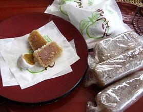 きっぱん(またはチッパン)、と呼ばれる沖縄伝統のお菓子。 三百年前(寛文年間)に中国福州から伝来された桔餅は、琉球王朝時代に尚家から届けられた「クニブの王様」といわれる羽地みかんを原料としてつくり、献上した琉球銘菓として重宝かられました。薫り高い伝統の銘菓きっぱん、沖縄で唯一製造販売をなさっているのが謝花さん、謝花さんが作るのはクニブ(沖縄産柑橘類)やカーブチー(沖縄産柑橘類)を原料とする「きっぱん(橘餅)」と、シブイ(冬瓜)を砂糖煮した冬瓜漬(写真右下)の二種類。 素朴な形ですが、表面はカラット乾き、中は軟らかさを保ち、ふっくらとした豊な味をしている。