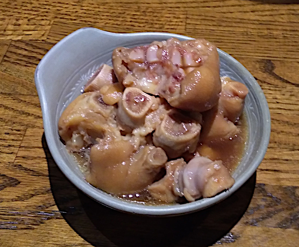 「足テビチ」から印象的な響きの「テビチ」が残り、足の意味に取って代わってしまっているのだ。本来の意味を考えると、「テビチの煮付け」は「煮込みの煮付け」となり意味不明だ。