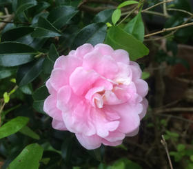 サザンカ(「さんさか」の音変化)ツバキ科の常緑小高木。九州・四国の山地に自生。葉は楕円形で両端がとがる。晩秋のころ白い花をつけ、散るときは花びらがばらばらに落ちる。種子から油をとり、材で器物を作る。園芸・観賞用としても栽培され、赤花・八重咲きなどの品種がある。ー コトバンク・デジタル大辞泉の解説より ー