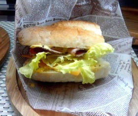 写真はハムとレタスをサンドイッチにしたもので、今回は私の好みで食パンの耳を切り落とさずに作った。