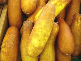 モーウイ(毛瓜)。 黒イボ種の華南型キュウリで、支柱を立てずに露地栽培(地を這わせる)をします。15世紀頃に中国華南地方から持ち込まれたと言われます。 沖縄では夏野菜の代表的なモーウイで7月から10月頃まで店頭に並びます。 キュウリの仲間ですが、キュウリに比べて実はしまっており、味も淡白で完熟してから収穫されるためか青臭さもありません。 写真でご覧のように、赤茶色の皮に細かな網目模様が入っています。