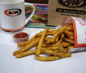 スーパーフライについてA&W ホームページより。 オランダやベルギーなどのヨーロッパ産のじゃがいもが原料。外はカリっと中はもっちりのどこか懐かしい味のこのフライドポテトはオランダ発祥のじゃがいも料理『ラスポテト』が起源で、いったん粉末にしたじゃがいもを各店舗で調理。