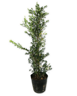 門柱後ろ植え替え候補 イヌツゲ 高木 小さくて丸みを帯びたかわいらしい葉が特徴です。枝葉が密生するので、自由に形を造れるのが魅力です。あまり目立ちませんが、初夏に小さな白い花、秋には黒紫色の丸い実を付けます。病虫害や日陰にも強く、育てやすいです。年1~2回程度、刈り込みをして形を整える必要があります。 鉢植えに適期は春の4月から6月で、秋は9月から10月です。鉢土の底に有機質肥料か緩効性化成肥料を元肥として入れておきます。根鉢と土がなじむように底から水が出るよう水をかける。