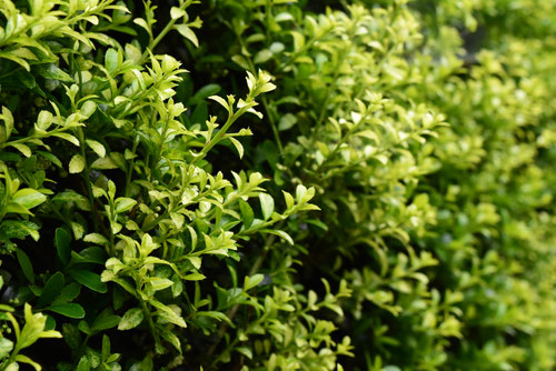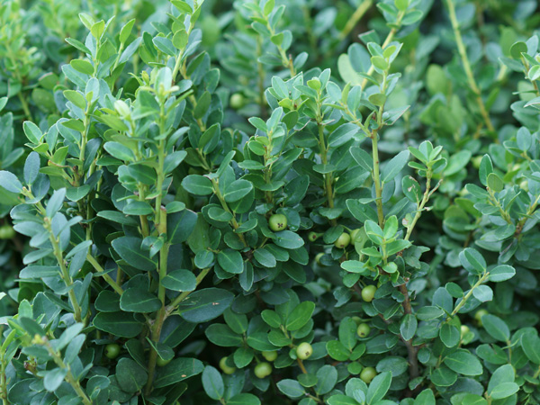 門柱後ろ植え替え候補 キンメツゲ 低木 イヌツゲと同じような性質を持つが、葉はイヌツゲに比べて小さく、密生する。また葉色はイヌツゲに比べてやや明るめの色をしている個体が多い。 日向を好むが半日陰程度なら生育できる。芽を出す力が強く、剪定に耐える。病害虫に強い。成長が遅く形が乱れにくいため、あまり手がかからない。乾燥に弱い。