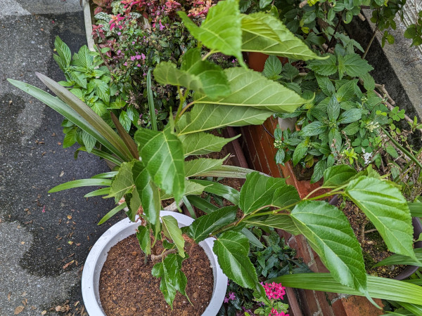 切り戻し: 伸びすぎた枝を、新芽が出ている少し上で切り取ります。樹蘭は古い枝の基部から新芽を出しやすいため、思い切って短く切っても再生しやすい性質があります。