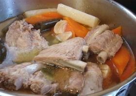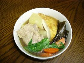 Bone-in ribs (spare ribs) are called soki in the Okinawan dialect. According to Wikipedia, ``soki'' is an accent of ``suki,'' and because pork ribs are shaped like a comb, pork ribs have also come to be called ``soki.'' It said.Soki soup is made by simmering soki cut meat with bones, daikon radish (shibui is also good), and kelp. Add a little awamori to remove the smell of the meat, a little garlic, bonito stock, salt, and soy sauce to adjust the flavor.
