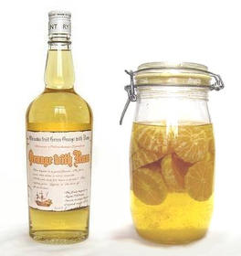 This time, rum (40°) is used for the green-cut tangerines. The green-cut tangerines have become clear and pale yellow in colour with the passage of time after soaking.