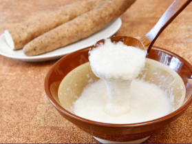 Nagaimo (Japanese yam, scientific name: Dioscorea polystachya) is a perennial climbing plant in the Dioscoreaceae (yam) family, genus Dioscorea. The term also refers to its enlarged, tuberous root. It is also known by its Chinese names shānyào(山薬) and shǔyù(薯蕷).There are several varieties, such as Nagaimo, Tsukuneimo, and Ichōimo. Although it is sometimes grouped under the general name yamaimo (mountain yam), it is a different species from Yamanoimo(also known as Jinenjo, scientific name: Dioscorea japonica).