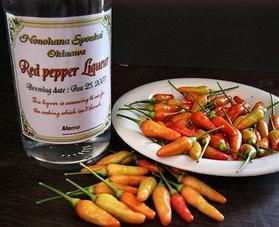 Photo 2 shows preparing to steep chili peppers in awamori. Cut off the stems of the koregusu peppers; only the fruit is steeped to prevent clouding the awamori. If the koregusu liquid level drops, top it up with more awamori. Steeping for too long will cause the peppers to lose their color, so remove them when the timing is right.