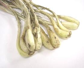 沖縄の方言でらっきょうを「ダッチョウ」と言いますが、これはかなり年配の方の話で、現在は「島らっきょう」の呼び方が主流。 本土で栽培されているらっきょうより小ぶりです。島らっきょうは生食が美味しいので、ちょっと欧米風に「島エシャレット」などと言って見たくなります。 Wikipedia フリー百科辞典によると ”一年物の早獲りラッキョウに「エシャレット」という商品名を命名したのは東京築地の青果卸業者である。名付け親である青果卸業担当者は『「根ラッキョウ」の商品名では売れないと思ったのでお洒落な商品名を付けた』と語っている。 ”もちろん、このブログで島らっきょうとエシャレットを混同させるつもりは毛頭なく、むしろ「島らっきょう」のネーミングをもっと広めたいと思っています。塩漬けや酢漬などの漬物にしたり、らっきょうチヤンプルー、らっきょう天ぷらなどにします。島らっきょうを美味しく食べるには、軽く塩もみして一晩寝かせた後、鰹削り節をまぶし、少し醤油をかけてサラダ感覚でいただきます。 香が良くピリッとした味は、お茶だけでなく、酒の肴にもぴったり。 塩を落とした島らっきょうをタッパー等の容器に入れ、冷蔵庫で保存すると1週間は楽しめます。
