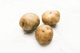 ジャガイモ(英: potato、学名:Solanum tuberosum)は、ナス科ナス属の多年草の植物。南アメリカのアンデス山脈原産。世界中で栽培され、デンプンが多く蓄えられる地下茎が芋の一種として食用される。揚げる、蒸す、茹でる、煮込み料理にするなどのほか、コロッケやポテトチップスなどの加工食品にもされ、デンプン原料としても需要がある。保存がきく野菜として扱われる一方で、主食にもなりえる重要な食物であり、ビタミンCやカリウムなどの豊富な栄養を含む特徴がある。芋から発芽した芽や光に当たって緑色になった皮などに有害物質を含む。世界的に多く食されている食物である。 ーウィキペディアー